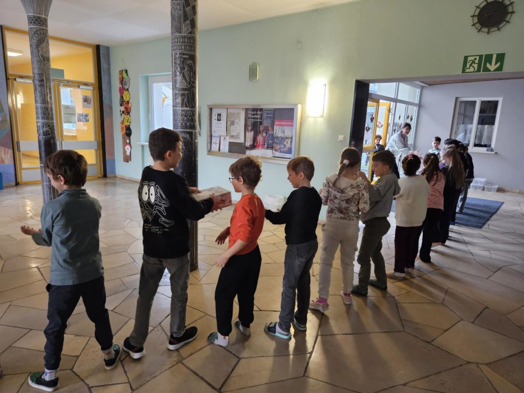 Am Freitag gingen bei der Aktion Kinder helfen Kindern 135 Päckchen auf die weihnachtliche Reise. In einer kleinen Feier wurde der Kinder gedacht, die in großer Armut und Not leben und denen hiermit eine kleine Freude bereitet werden sollte.